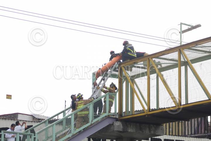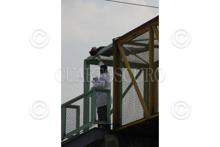 MEXICO D.F. 25JULIO2014.- Un joven perdió la vida tras ser electrocutado por cables de alta atención cuando imprudentemente caminaba sobre un puente peatonal ubicado en la Calzada Ignacio Zaragoza al cruce con la calle de Santa Teresa en la colonia Tepalcates en la delegación Iztapalapa. FOTO: SAUL LOPEZ /CUARTOSCURO.COM