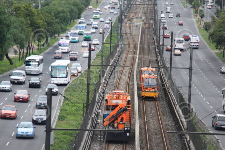 MÉXICO, D.F., 15JUNIO2015.- Largas filas y molestias por pasajeros de la linea A del Sistema de Transporte Colectivo Metro, se observa en el paradero de la estación Tepalcates debido a la insuficiente demanda de camiones para transportar a usuarios que descienden del metro y abordan unidades del RTP que se dirigen al paradero de La Paz. En la imagen maquinas realizan obras para alinear las vias debido a las inundaciones del subsuelo. FOTO: SAÚL LÓPEZ /CUARTOSCURO.COM