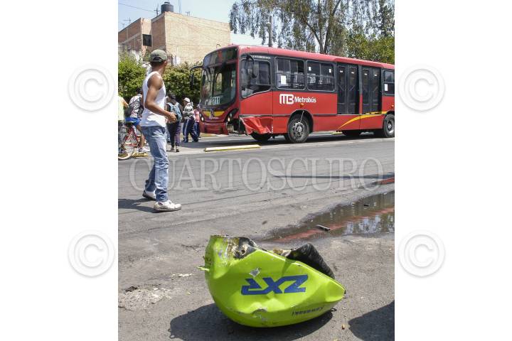 MÉXICO, D.F., 07OCTUBRE2015.- El conductor de una unidad del metrobús de la línea 2 fue agredido por un grupo de personas luego que atropellara a un motociclista en Periférico Oriente y Apatzingán de la colonia Tepalcates por lo que elementos de la Secretaria de Seguridad Pública impidieron que fuera golpeado. FOTO: ARMANDO MONROY /CUARTOSCURO.COM