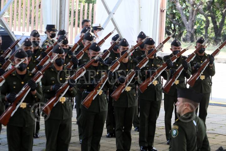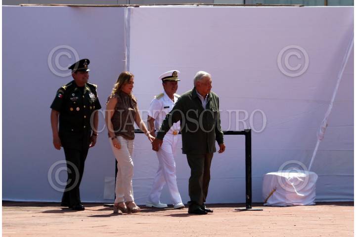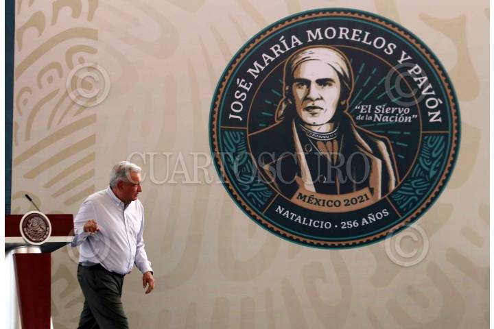 El presidente de la Republica Andrés Manuel López Obrador conmemoro el 256 aniversario del natalicio de José María Morelos y Pavón. En la imagen acompañado de su esposa Beatriz Gutiérrez Müller, del secretario de defensa, General Luis Crescencio Sandoval y del Almirante Rafael Ojeda Duran secretario de Marina.