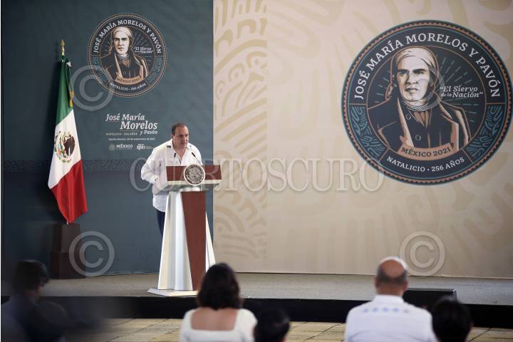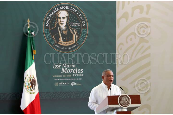 El presidente de la Republica Andrés Manuel López Obrador conmemoro el 256 aniversario del natalicio de José María Morelos y Pavón, en la imagen el gobernador de Morelos, Cuauhtémoc Blanco, durante su participación.