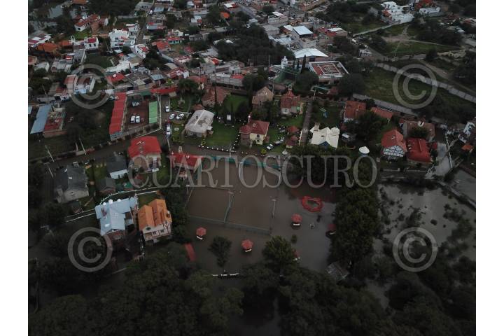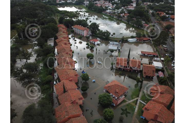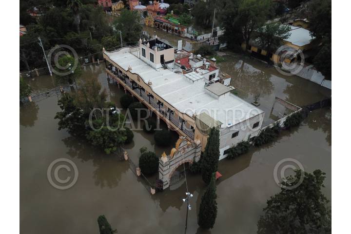 La zona del centro de Tequisquiapan debido a los escurrimientos del río San Juan y la presa Centenario, que se encuentran al máximo de su capacidad tras las intensas lluvias. Cientos de personas fueron evacuadas en lanchas de esta zona, ante la posibilidad de que el nivel del agua suba.