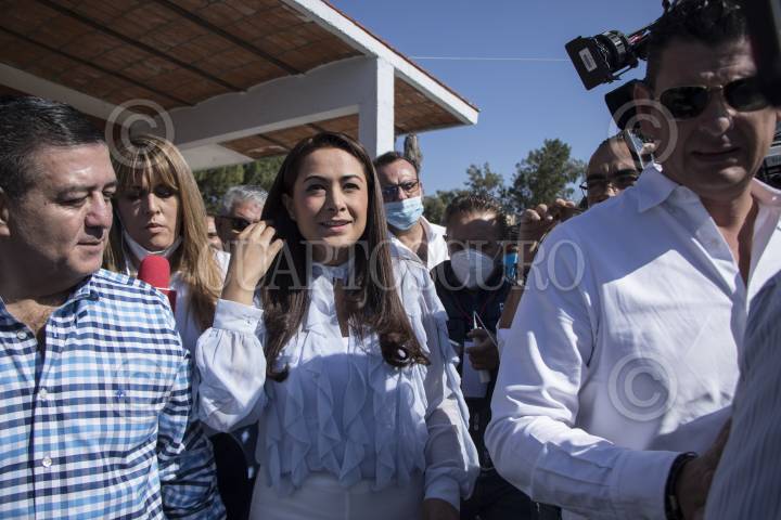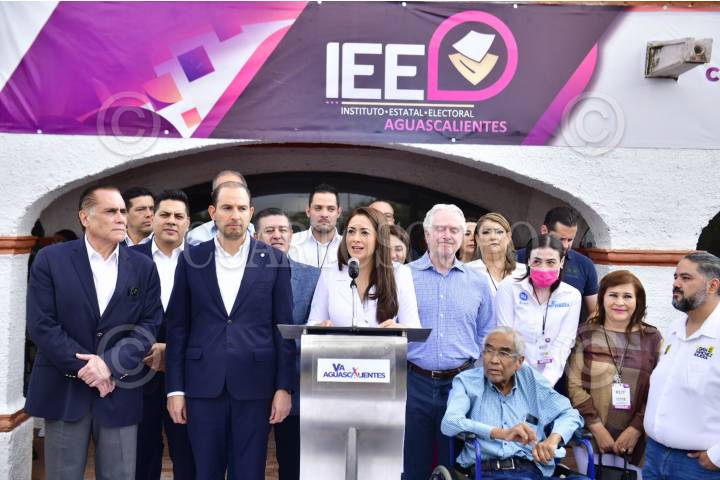 Teresa Jiménez, candidata a la gubernatura por la coalición "Va por Aguascalientes", entre los partidos PAN, PRI y PRD, ejerció su voto en la casilla instalada en la escuela primaria Jesús Reyes Heroles.