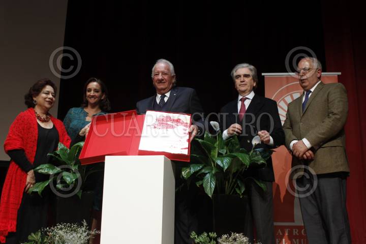 MÉXICO, D.F., 03DICIEMBRE2014.- Marcos Fastlicht, director del proyecto del libro Museo Nacional de Antropología. 50 Aniversario (1825-1964), Claudia Ruíz-Massieu, secretaria de Turismo, Teresa Franco, directora del INAH y Antonio Saborit, director del MNA, durante la ceremonia en donde se presento este trabajo editorial que conmemora a este gran recinto que alberga el patrimonio prehispánico de nuestro país, en el auditorio Jaime Torres Bodet del MNA. FOTO: MOISÉS PABLO /CUARTOSCURO.COM