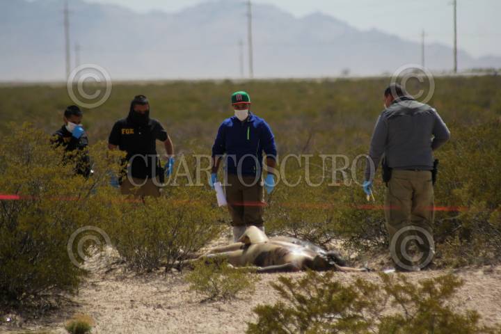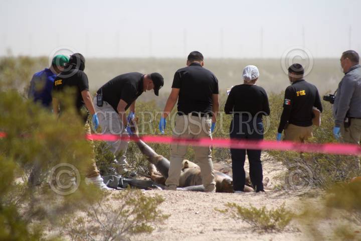 CIUDAD JUÁREZ, CHIHUAHUA, 15MARZO2018.- Tres hombres fueron encontrados en una brecha a la altura del kilómetro 22 de la carretera a Casa Grandes. De acuerdo con la versión preliminar, los cuerpos se encontraban desnudos y ya entrados en etapa de descomposición. Fueron tirados entre los arbustos El hallazgo fue realizado y reportado a las autoridades por personas dedicadas a la recolección de materiales para reciclar. FOTO: NACHO RUIZ /CUARTOSCURO.COM