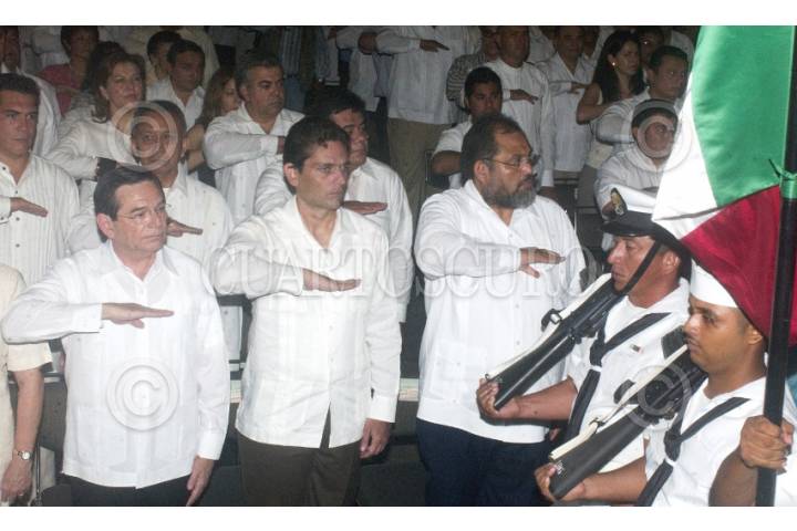 CAMPECHE, CAMPECHE, 08AGOSTO2008.-El Secretario de Gobernación, Juan Camilo Mouriño Terrazo, asistió esta mañana, con la representación personal del Presidente de la República, Felipe Calderón Hinojosa, al V Informe de Gobierno del mandatario estatal de Campeche, Jorge Carlos Hurtado Valdés. FOTO: CUARTOSCURO.COM