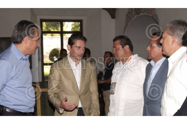 CUARNAVACA, MORELOS, 12AGOSTO2008.- En el marco de su participación en la Clausura del Foro Nacional Temático Federalismo y Descentralización realizado en Morelos, el Secretario de Gobernación, Juan Camilo Mouriño Terrazo, se reunió con los gobernadores de los estados de Morelos, Guanajuato, Tlaxcala y Sinaloa; Marco Antonio Adame Castillo, Juan Manuel Oliva Ramírez, Héctor Ortiz Ortiz y Jesús Aguilar Padilla, respectivamente. FOTO: CUARTOSCURO.COM