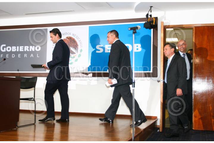MÉXICO, D.F., 14AGOSTO2008.- El Secretario de Gobernación, Juan Camilo Mouriño Terrazo acompañado del Procurador de la República, Eduardo Medina Mora y el Secretario de Seguridad Pública, Genaro García Luna, en conferencia de prensa donde dieron a conocer la fecha para definir una estrategia de combate contra la delincuencia en el país. FOTO: SAÚL LÓPEZ/CUARTOSCURO.COM