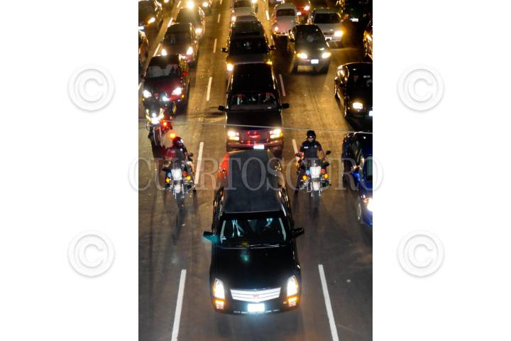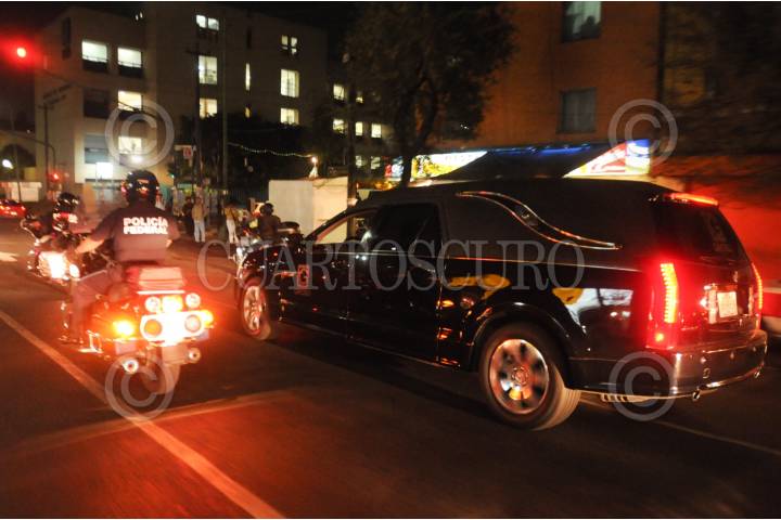 MEXICO D.F. 05OCTUBRE2008.- Aspecto del traslado de los restos del Secretario de Gobernacion Juan Camilo Mouriño Terrazo del Servicio Medico Forense hacia la funeraria Gayosso de Felix Cuevas. La carroza fue escoltada por elementos del estado mayor presidencial y elementos de la Policia Federal. FOTO: SAUL LOPEZ/CUARTOSCURO.COM
