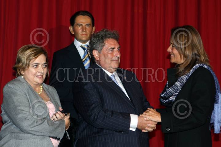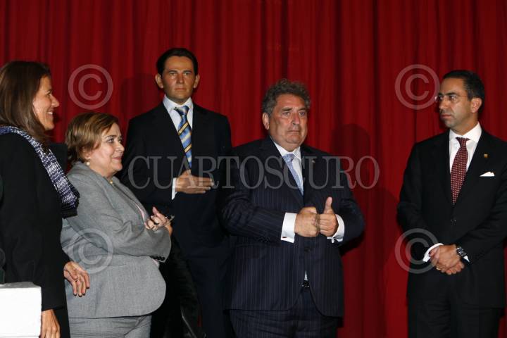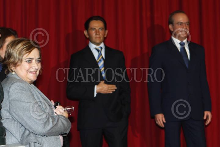 MÉXICO, D.F., 04NOVIEMBRE2010.- María de los Angeles Terrazo Blanco de Mouriño y Carlos Mouriño Atánes, padres de Juan Camilo Mouriño, ex secretario de Gobernación acompañados de Margarita Zavala, esposa del presidente Felipe Calderon durante la delevación de la estatua de cera del ex secretario que se realizo esta noche en el museo de Cera a dos años de su deceso. FOTO: RODOLFO ANGULO/CUARTOSCURO.COM