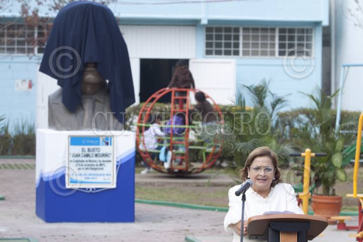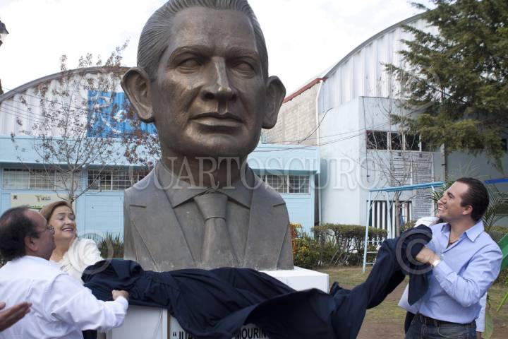 MÉXICO, D.F. 05NOVIEMBRE2011.- María de los Ángeles Terrazo, madre del desaparecido Juan Camilo Mouriño, y Carlos Orvañanos, delegado de Cuajimalpa, develaron un busto en memoria del ex-secretario de Gobernación, en el deportivo "Huizachito" de la delegación cuajimalpense. FOTO: MOISÉS PABLO/CUARTOSCURO.COM