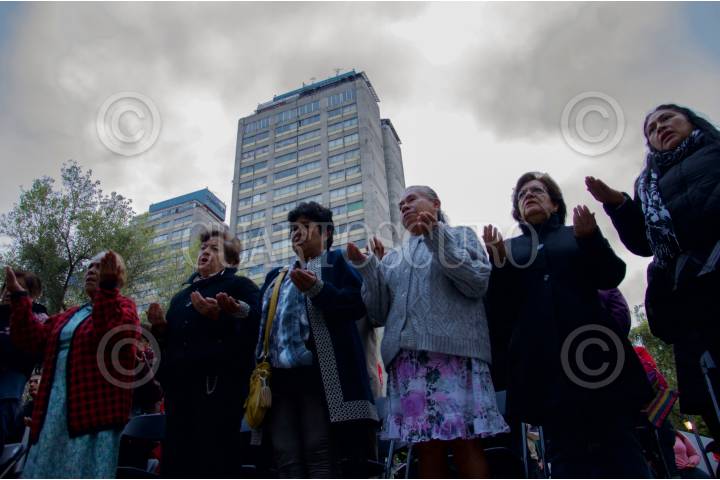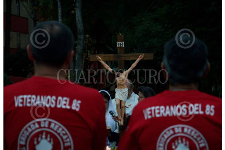 CIUDAD DE MÉXICO, 19SEPTIEMBRE2016.- Colonos de la unidad habitacional Tlatelolco acudieron a la misa con motivo del trigésimo primer aniversario del terremoto de 1985, en donde el edificio Nuevo León de antes dicha unidad colapsó, dejando un saldo de más de 200 muertos. FOTO: GALO CAÑAS /CUARTOSCURO.COM