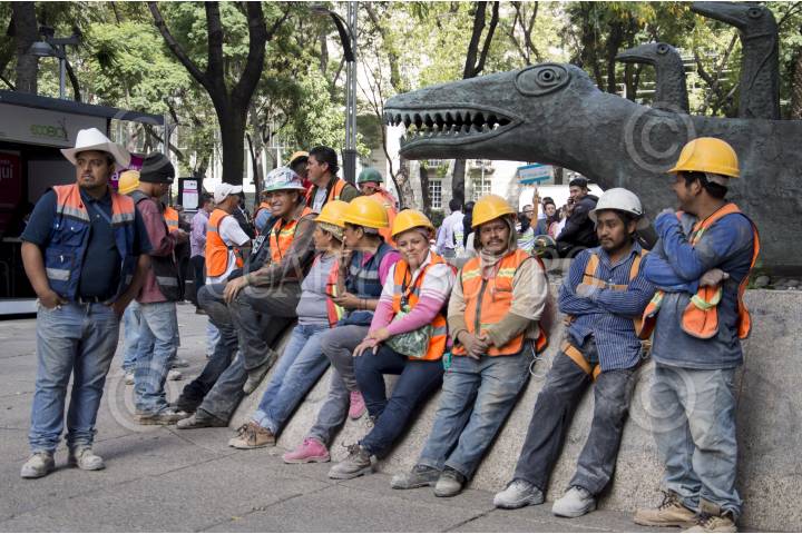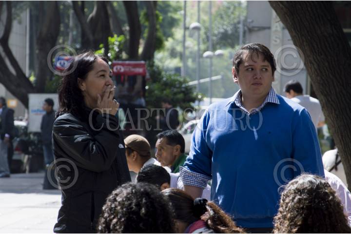 CIUDAD DE MÉXICO, 18SEPTIEMBRE2019.- Centenares de oficinistas, llamados popularmente "godínez", aguardan en el camellón de la avenida Vito Alessio Robles, su reingreso a las oficinas. Esto en el marco del simulacro en conmemorativo del terremoto de los pasados grandes terremotos que azotaron la ciudad en 1985 y 2019. FOTO: PEDRO ANZA /CUARTOSCURO.COM