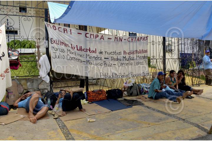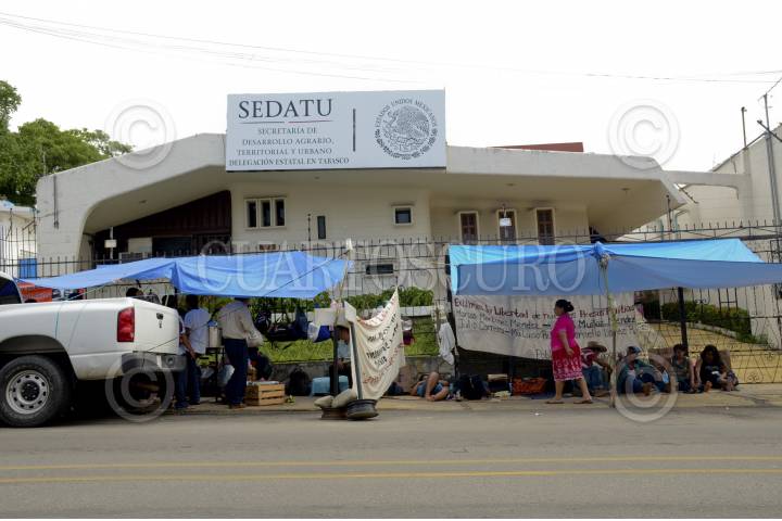 VILLAHERMOSA, TABASCO, 21JULIO2015.- Un grupo de campesinos humildes exigieron justicia y liberación de sus presos políticos en las afueras de la Secretaria de Desarrollo Agrario, Territorial y Urbano de la delegación local, donde mantienen un plantón con pancartas. FOTO: MARCO POLO GUZMÁN HERNÁNDEZ /CUARTOSCURO.COM