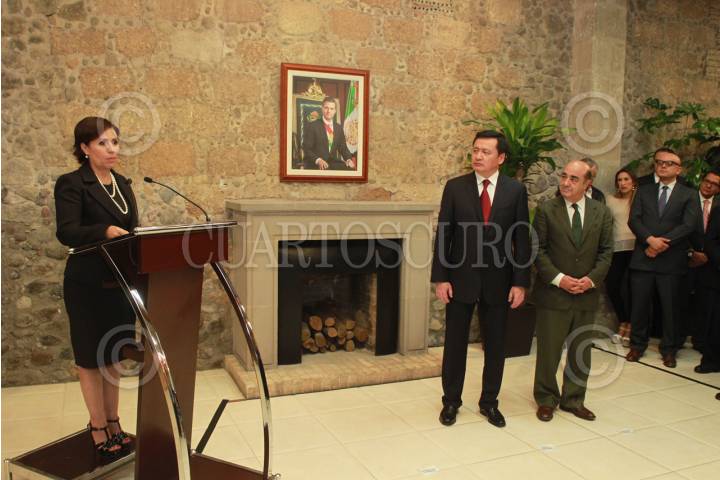 MÉXICO, D.F., 27AGOSTO2015.- Rosario Robles Berlanga, tomó posesión como la nueva titular de la Secretaría de Desarrollo Agrario, Territorial y Urbano, frente a la presencia de Miguel Ángel Osorio Chong, Secretario de Gobernación y Jesús Murillo Karam, anterior responsable. FOTO: CUARTOSCURO.COM