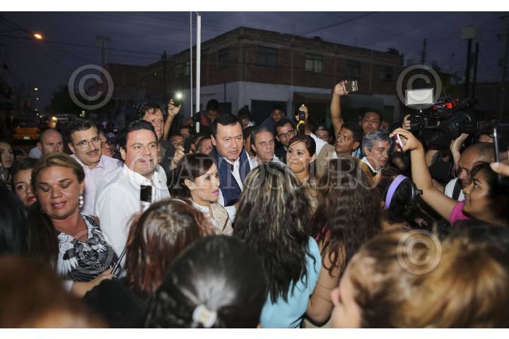 TONALÁ, JALISCO, 11MAYO2016.- Miguel Ángel Osorio Chong, secretario de Gobernación; Aristoteles Sandoval, gobernador del estado, y la Secretaria de Desarrollo Agrario, Territorial y Urbano, Rosario Robles Berlanga realizaron una Caminata Nocturna para dialogar con los habitantes de las secciones I, II y III de la colonia Jalisco, perteneciente a este municipio. FOTO: SEGOB /CUARTOSCURO.COM