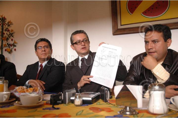 ECATEPEC, ESTADO DE MÉXICO, 07JULIO2008.- El tesorero municipal, Edgar Martínez Zendejas, denunció que de manera ilegal, sin previo aviso y sin notificación, fue sustraído de la cuenta del gobierno de Ecatepec, un millón 691 mil 987 pesos de la asignación mensual del Fondo de Aportaciones para el Fortalecimiento de los Municipios (FORTAMUN) y transferido vía electrónica a la cuenta del Gobierno del Estado de México, por lo que el gobierno local presentó una denuncia de hechos ante la Procuraduría General de la República en contra de quien resulte responsable. FOTO: MARIO NULO/CUARTOSCURO.COM