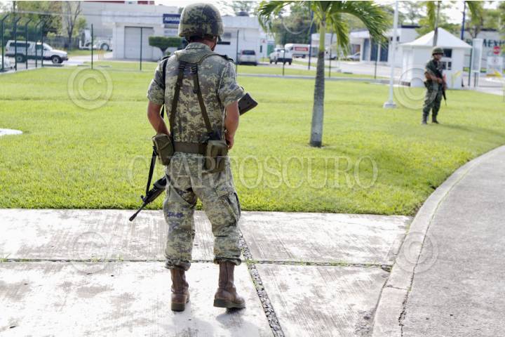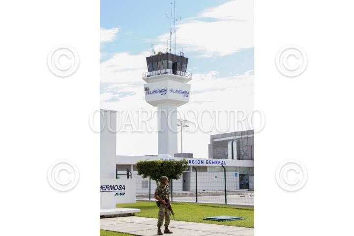 VILLAHERMOSA, TABASCO, 09JUNIO2013.- Elementos del Ejercito Mexicano y Agentes de la Policía Federal Ministerial, resguardaron en las inmediaciones del aeropuerto Internacional capital Carlos A. Rovirosa, donde esperan la llegada de la aeronave que trasladara detenido a José Manuel Saíz Pineda, ex secretario de Finanzas que fue detenido anoche en la ciudad de Reynosa, Tamaulipas cuando intentaba huir del país. FOTO: MARCO POLO GUZMÁN HERNÁNDEZ /CUARTOSCURO.COM