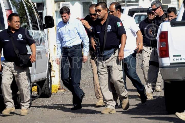 VILLAHERMOSA, TABASCO, 09JUNIO2013.- José Manuel Saíz Pineda, ex secretario de Finanzas al momento de ser bajado de las camionetas que lo trasladaban. En la imagen el ex tesorero en el sexenio del ex gobernador Andrés Rafael Granier Melo camina custodiado en el area del patio trasero de la Procuraduría General de Justicia. FOTO: MARCO POLO GUZMÁN HERNÁNDEZ /CUARTOSCURO.COM
