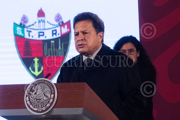 Ricardo Aldana es uno de los 25 candidatos que buscan dirigir el Sindicato de Trabajadores Petroleros de la República Mexicana (STPRM), durante su exposición en la mañanera.