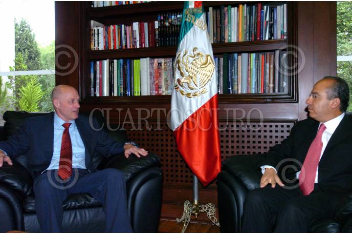 MÉXICO, D.F., 24ABRIL2007.- El presidente Felipe Calderón Hinojosa recibió en Los Pinos al secretario del Tesoro de EU, Henry Paulson. FOTO: ALFREDO GUERRERO/CUARTOSCURO.COM