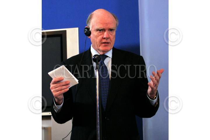 MEXICO, D.F. 15DICIEMBRE2005.- John Snow, secretario del Tesoro de Estados Unidos, durante una conferencia de prensa que ofreció a los medios de comunicación. FOTO: Nelly Salas/CUARTOSCURO.COM