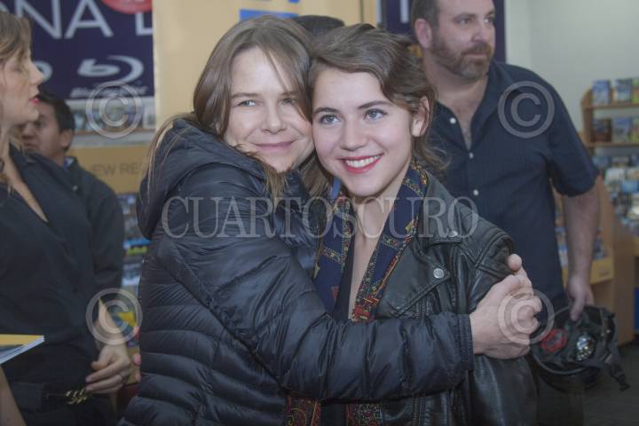MÉXICO, D.F., 12FERBERO2013.- Las actrices, Nailea Norvind y su hija Tessa Ía González Norvind se abrazan al termino de la conferencia de prensa donde se presentó la cinta "Despues de Lucía" de la cual Tessa es protagonista en DVD y Blue Ray. La película de Michel Franco compite este fin de semana en los PRemios Goya en la categoria de mejor cinta Iberamericana. FOTO: FRANCISCO RODRÍGUEZ /CUARTOSCURO.COM