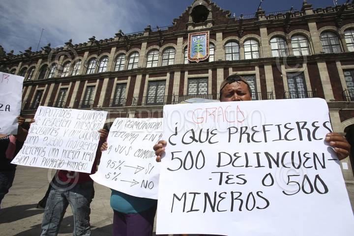 CUERNAVACA, MORELOS, 19JUNIO2013.- Un grupo de habitantes del poblado de Tetlama se manifestaron frente al palacio de Gobierno del Estado, ellos alegan que están de acuerdo con el proyecto minero de la compañía Esperanza Silver, ya que necesitan los empleos y el gobierno del estado nos les ha ofrecido nada para mejorar su calidad de vida. FOTO: ALMA LAFAYET /CUARTOSCURO.COM