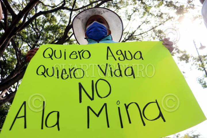 Opositores a la minera Esperanza Silver protestan y exigen que se detengan los trabajos de exploración para abrir una mina de oro a tajo abierto en terrenos de la comunidad de Tetlama.