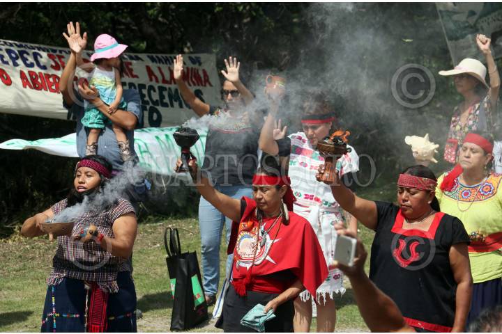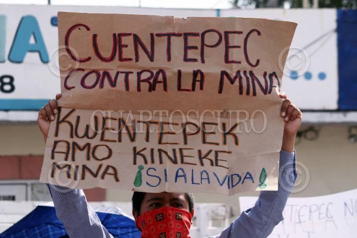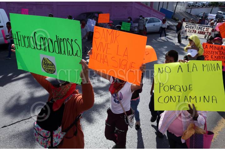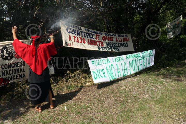 Opositores a la minera Esperanza Silver prostestan y exigen que se detengan los trabajos de exploracion para abrir una mina de oro a tajo abierto en terrenos de la comunidad de Tetlama.