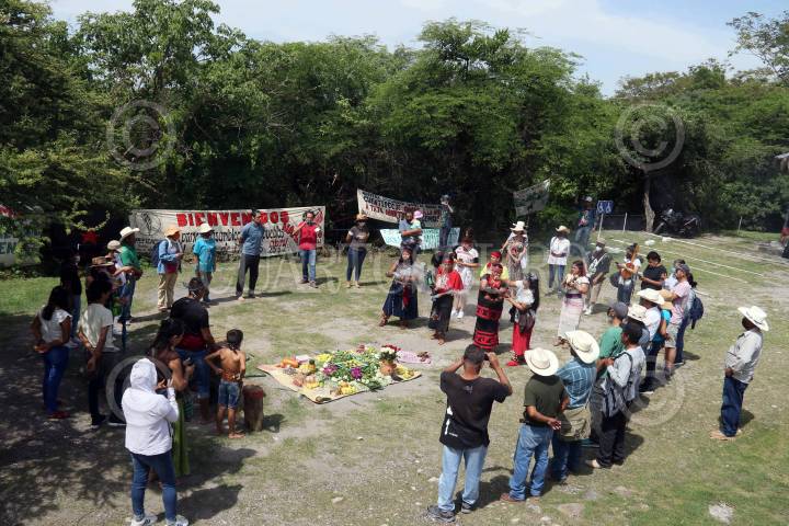 Opositores a la mineria en el estado conmemoraron el natalicio del General Emiliano Zapata en la zona arqueologica de Xochicalco.
