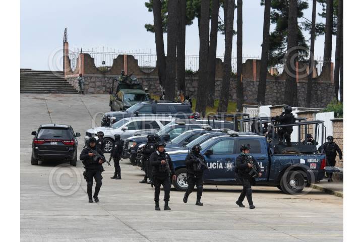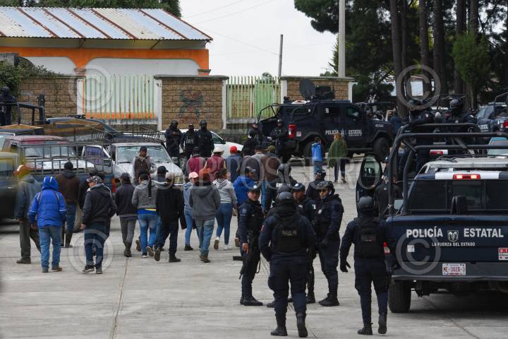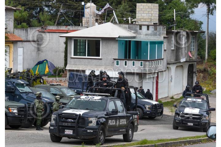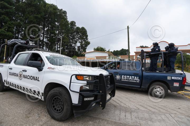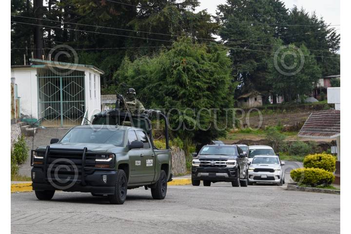 TEXCALTITLÁN, ESTADO DE MÉXICO, 11DICIEMBRE2023.- A unos días del enfrentamiento que se registró en Texcapilla, municipio de Texcaltitlán, en donde murieron 14 personas, elementos de la Policía Estatal, Ejército, Guardia Nacional resguardan este poblado que cansado de la inseguridad y extorsiones por parte de un grupo criminal, las calles lucen solitarias y los negocios cerrados, el temor mantiene a los pobladores en sus hogares. FOTO: CRISANTA ESPINOSA AGUILAR /CUARTOSCURO.COM