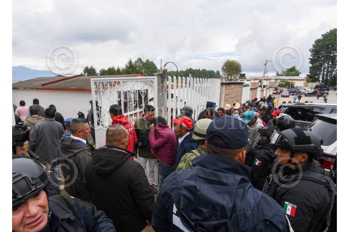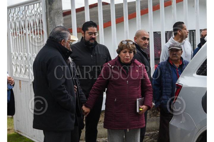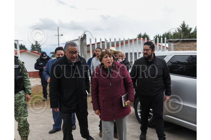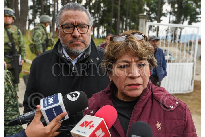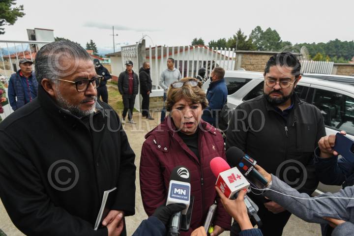 TEXCALTITLÁN, ESTADO DE MÉXICO, 11DICIEMBRE2023.- Bajo un fuerte dispositivo de seguridad arribó al poblado Texcapilla, en el municipio de Texcaltitlán, la Gobernadora del Estado de México, Delfina Gómez Álvarez, Horacio Duarte, Secretario General de Gobierno y Andrés Andrade Téllez, Secretario de Seguridad estatal y sostuvieron una reunión con los habitantes de este poblado cansado por las extorsiones de grupos criminales, la gobernadora mexiquense afirmó que las fuerzas federales permanecerán en la región para garantizar la seguridad de la población. FOTO: CRISANTA ESPINOSA AGUILAR /CUARTOSCURO.COM