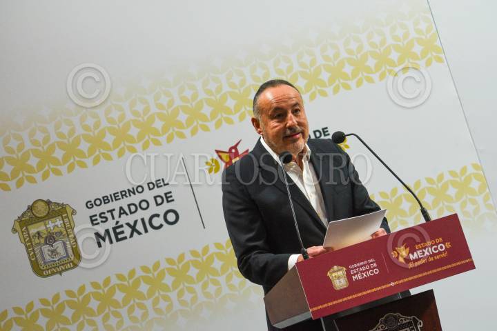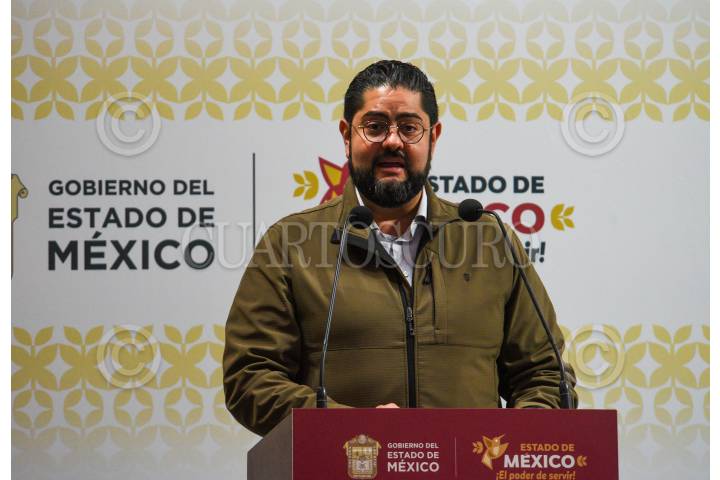 TOLUCA, ESTADO DE MÉXICO, 27DICIEMBRE2023.- José Luis Cervantes Fiscal General de Justicia del Estado de México durante el informe a medios encabezado por Delfina Gómez Álvarez Gobernadora del Estado de México sobre el seguimiento del caso Texcaltitlán; por su parte la FGJEM informó que quedan exentos de acción penal los pobladores que participaron en el enfrentamiento en Texcapilla, y sobre las 14 personas desaparecidas ya fue emitida su ficha de búsqueda, se continúan con las investigaciones y se ofrece recompensa a quien dé informes sobre su paradero. También se informaron sobre las acciones en torno a Salud, Educación, Bienestar, Campo y DIFEM. FOTO: CRISANTA ESPINOSA AGUILAR /CUARTOSCURO.COM