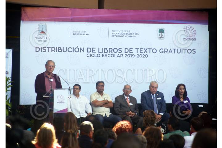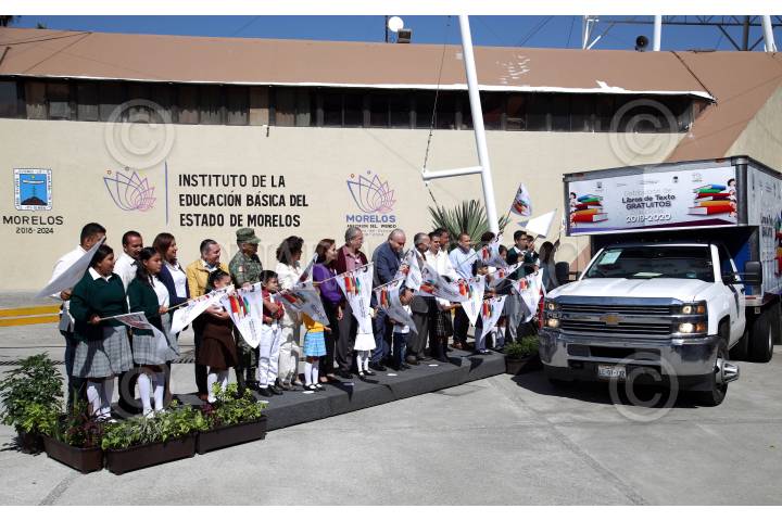 CUERNAVACA, MORELOS, 01AGOSTO2019. Banderazo de salida a los vehículos que distribuirán más de dos millones de libros de texto en las escuelas de educación inicial y primaria en el estado. El evento estuvo encabezado por el jefe de la Oficina de la Gubernatura, José Manuel Sanz Rivera, acompañado del director general de la Comisión Nacional de Libros de Texto, el secretario de Educación, Luis Arturo Cornejo, el director del Instituto de Educación Básica, Eliacin Salgado y el subsecretario de Gobierno, José de Jesús Guízar. FOTO: MARGARITO PÉREZ RETANA /CUARTOSCURO.COM