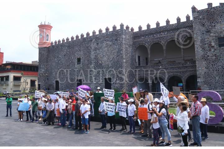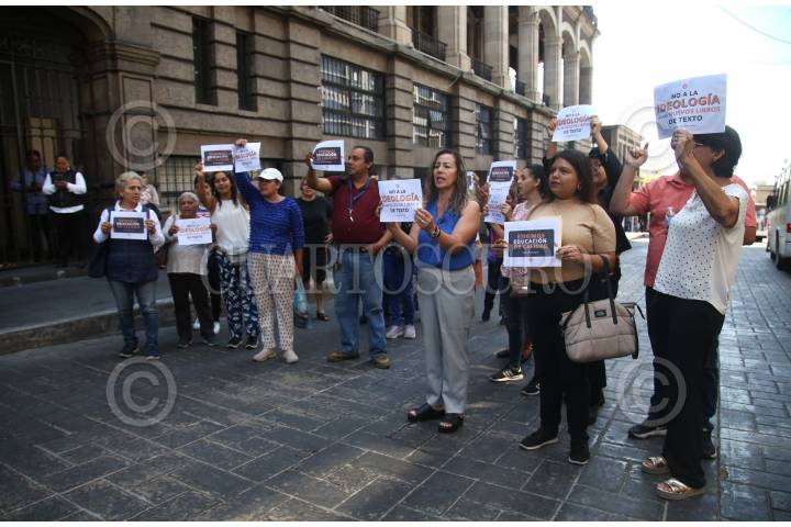 Encabezados por Rogelio Varela, integrante de la Unión Nacional de Padres de Familia, una decena de católicos protestaron en la puerta del Palacio de Gobierno de Morelos, por la distribución de los nuevos libros de texto.