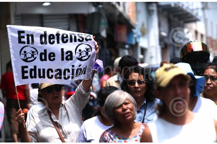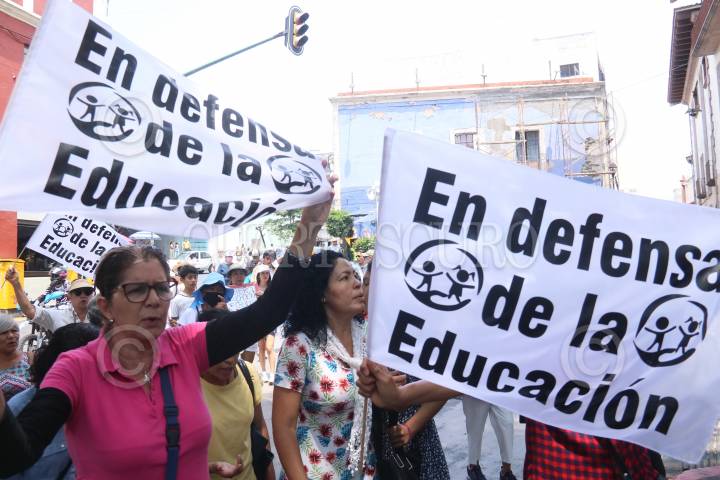 Unas cuarenta personas participaron en la movilización "En defensa de la educación" y contra la distribución de los libros de textos.