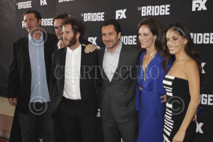 MÉXICO, D.F., 05JULIO2013.- Los actores Mathew Lillard, Thomas M. Wright, Demián Bichir, Annabeth Gish, y Sandra Echeverría, durante la alfombra roja de la serie The Bridge. FOTO: SAÚL LÓPEZ /CUARTOSCURO.COM