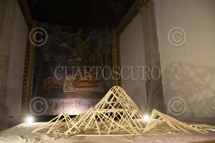 CIUDAD DE MÉXICO, 17MAYO2017.- La exposición “Asombrosas criaturas” del artista holandés Theo Jansen se presenta en el Laboratorio de Arte Alameda del INBA hasta el 13 de agosto. Las criaturas llamadas por su artista “bestias de playa” están compuestas por tubos y botellas de plástico y presentan una fusión de arte e ingeniería. FOTO: MARIO JASSO /CUARTOSCURO.COM
