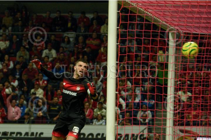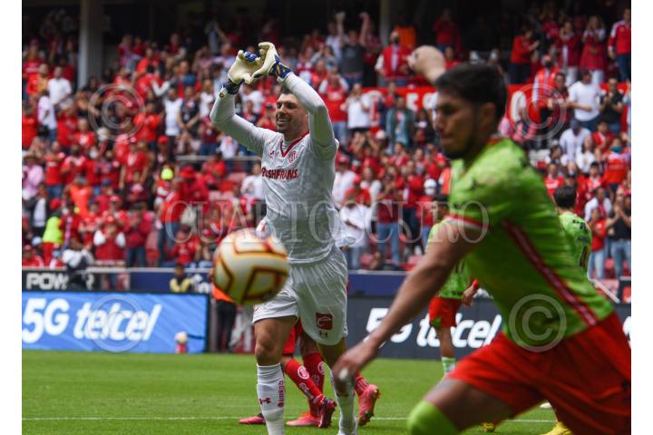 Tiago Volpi portero de los Diablos de Toluca y Alfredo Talavera portero de Bravos de Juárez durante el encuentro de la jornada 16 del estadio Nemesio Diez.