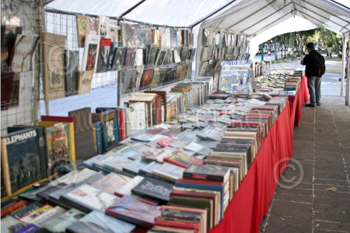 MÉXICO, D.F., 27DICIEMBRE2009.- Sobre la avenida Alvaro Obregón en la colonia Roma se instaló un tianguis cultural en donde se pone a la venta cientos de libros, esculturas, pinturas y démas detalles que sirven como obsequio para este fin de año. FOTO: MISAEL VALTIERRA/CUARTOSCURO.COM