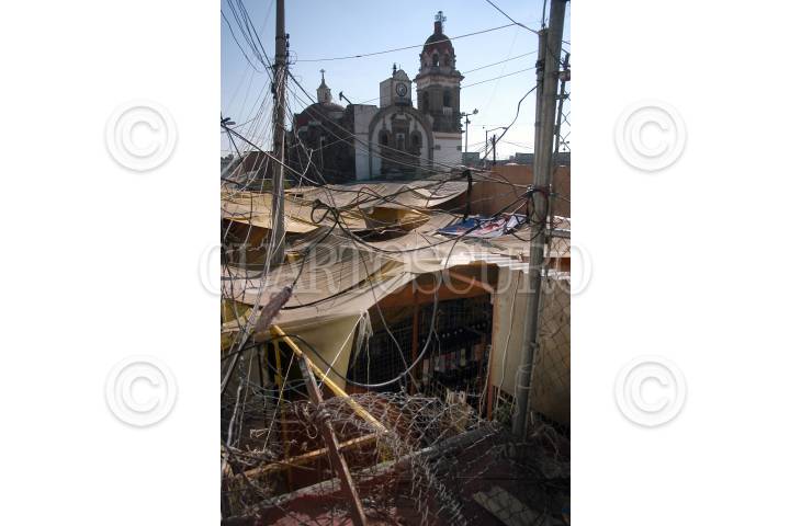 MEXICO D.F. 15DICIEMBRE2006.- Lonas y cables de los diablitos utilizados por los comerciantes del mercado de Tepito invaden las azoteas de las casa aledañas de esta zona . FOTO: GUILLERMO PEREA /CUARTOSCURO.COM