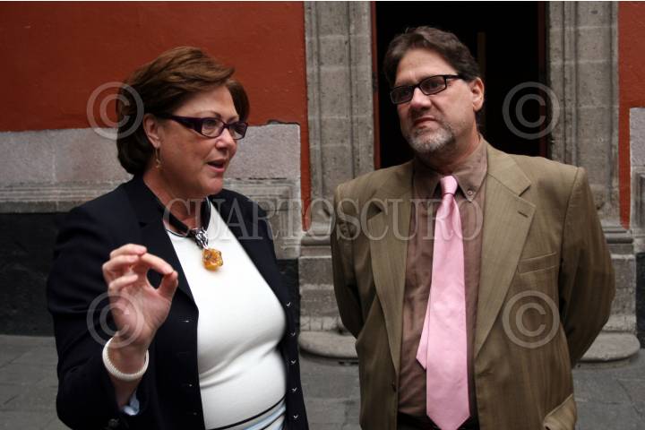 MÉXICO D.F. 29ENERO2008.-Elena Cepeda de León titular de la Secretaria de Cultura del gobierno capitalino es acompañada por Luis. M. Tiburcio Director y Representante de la UNESCO en México, momentos antes de la firma del convenio de cooperaración a largo plazo, esto en el Museo de la Ciudad. FOTO: GUILLERMO PEREA/CUARTOSCURO.COM
