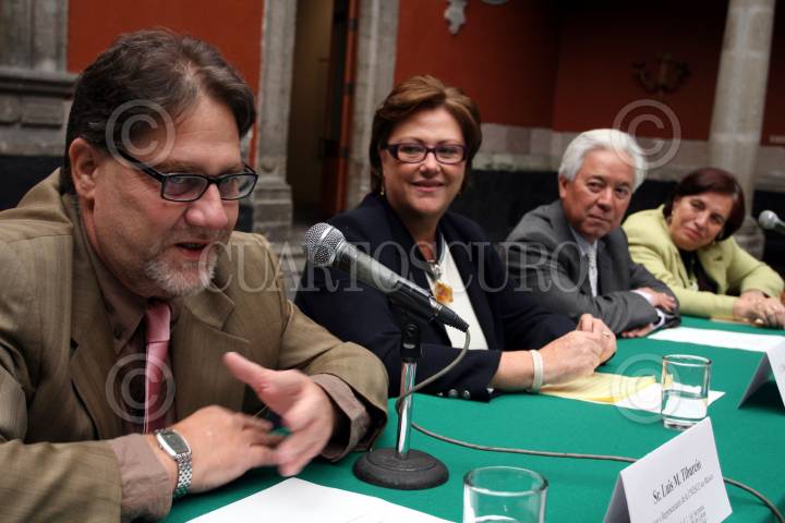 MÉXICO D.F. 29ENERO2008.-Luis. M. Tiburcio Director y Representante de la UNESCO en México acompañado de Elena Cepeda de León titular de la Secretaria de Cultura del gobierno capitalino y de Axel Dridikson Secertadio de educación del gobierno capitalino durante la firma del convenio de cooperaración a largo plazo, esto en el Museo de la Ciudad. FOTO: GUILLERMO PEREA/CUARTOSCURO.COM