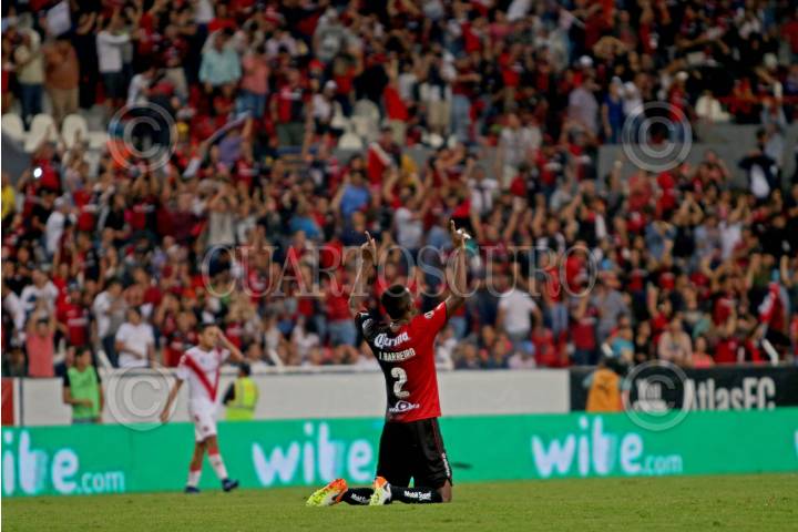 GUADALAJARA, JALISCO, 30JULIO2016.- Jaime Barreiro jugador de Atlas, celebra la victoria, en partido correspondiente a la Jornada 3 del Torneo Apertura2016 de la Liga MX, en donde se enfrentan los Zorros del Atlas frente a los Tiburones Rojos de Veracruz, en partido que se juega en el estadio Jalisco y en donde el marcador final fue de 1-0 a favor del Atlas. FOTO : FERNANDO CARRANZA GARCIA / CUARTOSCURO.COM
