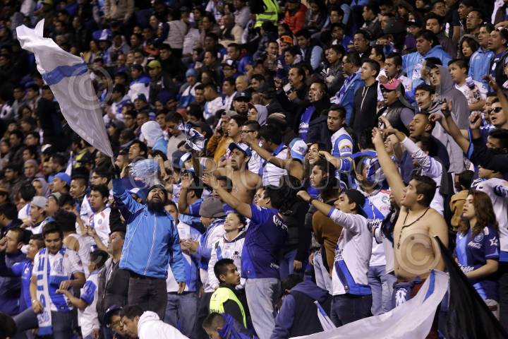 PUEBLA, PUEBLA, 19ENERO2018.- Porra del Club Puebla festeja resultado 2-0 ante el Veracruz, correspondiente a la jornada 3 del clausura 2018 de la Liga MX celebrado en el estadio Cuauhtémoc. FOTO: HILDA RÍOS/CUARTOSCURO.COM