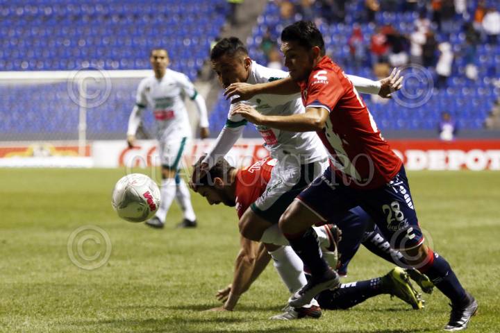 PUEBLA, PUEBLA, 23ENERO2016.- Los jugadores Félix Araujo y Diego Chávez durante jugada del partido entre los Tiburones de Veracruz y los Jaguares de Chiapas correspondiente a la jornada 3 del torneo de Clausura 2016 de la liga de futbol MX celebrado en el estadio Cuahutémoc. FOTO: HILDA RÍOS /CUARTOSCURO.COM