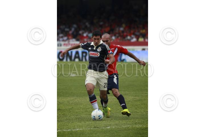 BOCA DEL RÍO, VERACRUZ., 23AGOSTO2014.- El jugador de las Chivas Israel Castro conduce el balón durante el juego contra los Tiburones Rojos del Veracruz, quienes empataron a 0-0, en el estadio Luis Pirata Fuente. FOTO: FÉLIX MÁRQUEZ /CUARTOSCURO.COM