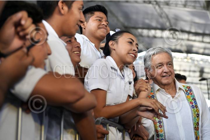 TICUL, YUCATÁN. 12ABRIL2019.- Andrés Manuel López Obrador, presidente de México, realizó esta tarde la entrega de Programas Integrales de Bienestar y Universidades Públicas ‘Benito Juárez’ en la cancha de sóftbol de la colonia Obrera de la entidad. FOTO: GOBIERNO DE LA REPÚBLICA /CUARTOSCURO.COM