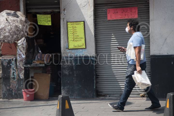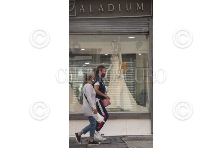 Algunos comercios comienzan abrir sus puertas, en la Ciudad. En el transporte, la gente se protege en la Contingencia Sanitaria por Covid 19.